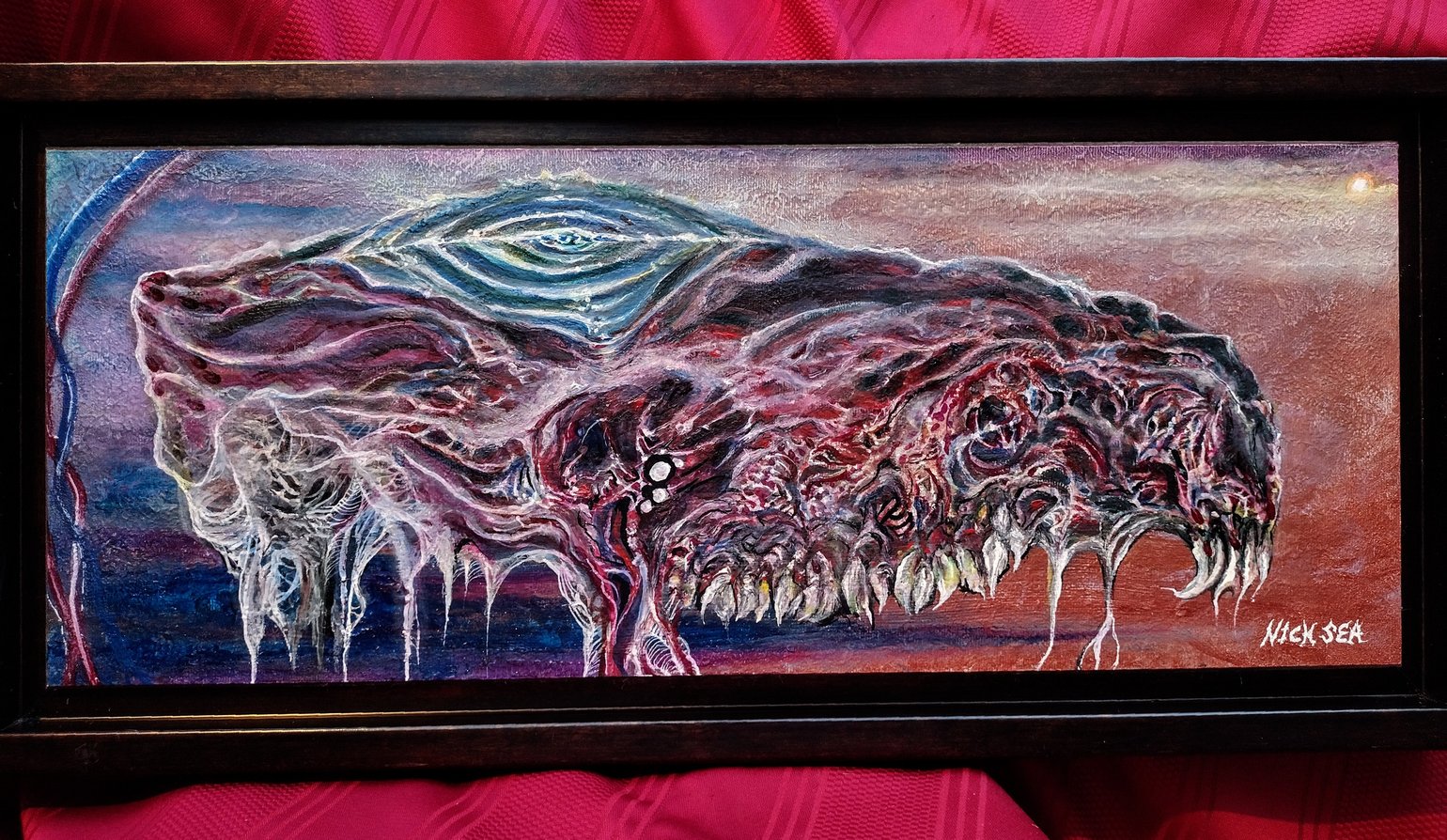 Oil on panel in custom 10" x 22" frame.